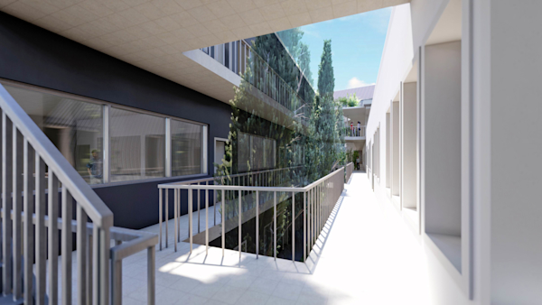Deux préaux, un dans chaque angle de la cour principale, viendront compléter l’ensemble.